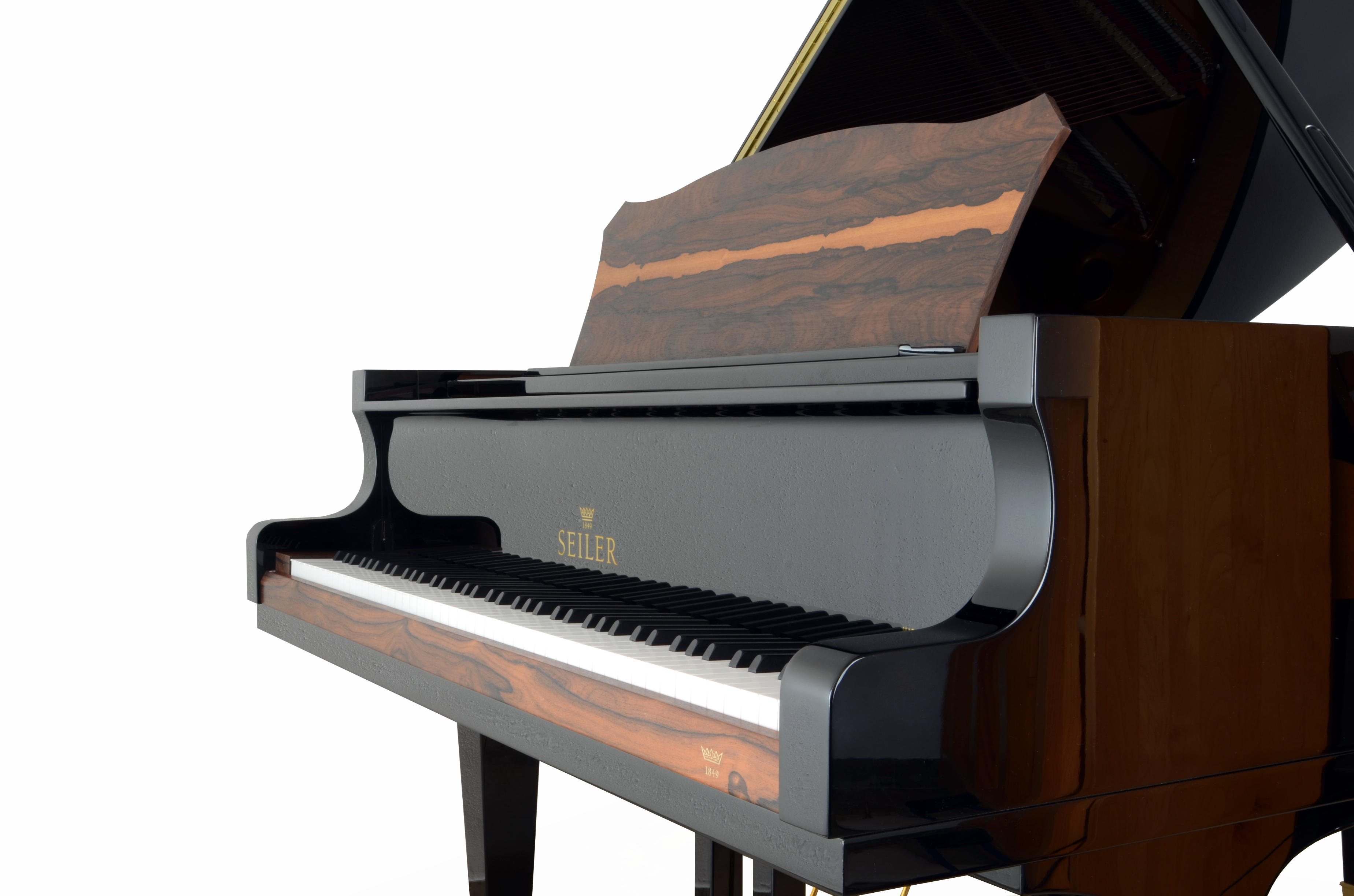 2023 wurde im Rahmen der Meisterprüfung von Jörn Zehner dieser Seiler Flügel gebaut. Auf Grund der Experimentierfreudigkeit von Jörn weißt der Flügel einige Besonderheiten auf. Optisch heben sich die furnierten Gehäuseteile hervor. Zierleiste und Backen wurden während der Prüfung in Ludwigsburg eingepasst. Da die Gehäuseteile mit der Hand bearbeitet werden mussten, hat sich Jörn für furnierte Gehäuseteile entschieden. Nicht direkt sichtbar sind die alternativen CKM Gewichte. Es wurde bewusst auf Blei verzichtet und ermöglicht gerade am neuen Instrument keine Kontamination mit Blei. Die Mensur wurde nachgerechnet und mit einer Alternative bezogen. Durch eine dünnere Draht Auswahl, wird der Boden weniger belastet, wodurch der Flügel zwar etwas leiser, aber dafür auch grundtöniger und transparenter wird. Somit das perfekte Instrument für Ihr Wohnzimmer.